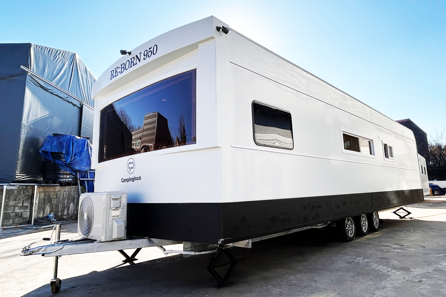리본950S+는 내부 시설 추가 없이 사용가능한 풀옵션 중대형카라반으로 긴 체류와 숙박 목적에 적합하도록 설계되었습니다.